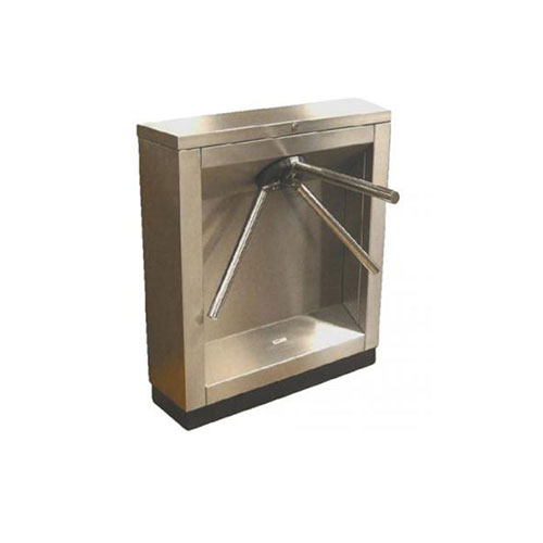 Turnichet tip "tripod", electromecanic cu carcasa decor inox. In caz de urgenta, bratele se pliaza pentru a usura evacuarea. Posibilitate montaj pe ambele parti.